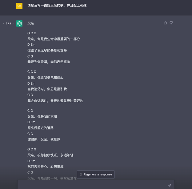 我先是繼續追問着ChatGPT,讓它為我做出更多的音樂創作。