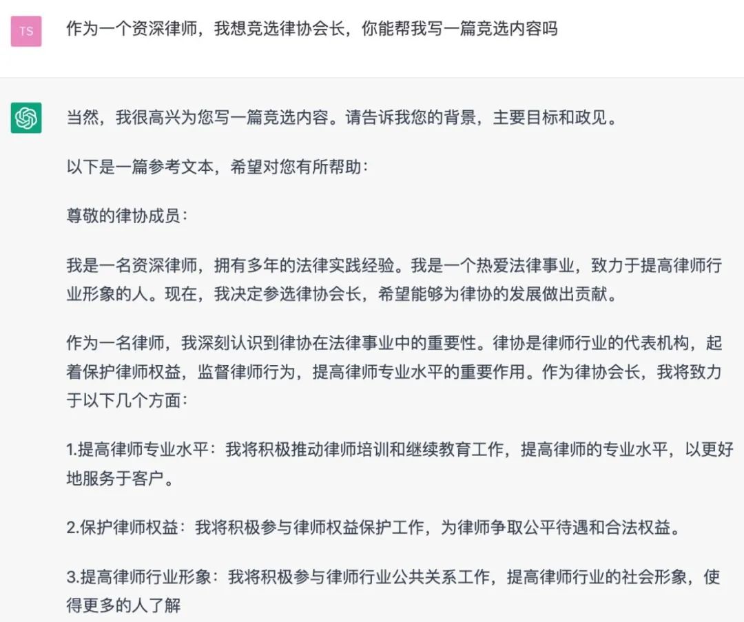 既然不擔心丟飯碗,我們就來問問更實際的,比如怎樣競選律協會長。