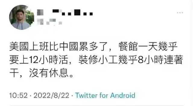 美國不是八小時,講人權嗎?你上十幾個小時的班,你們潤的是假美國吧!