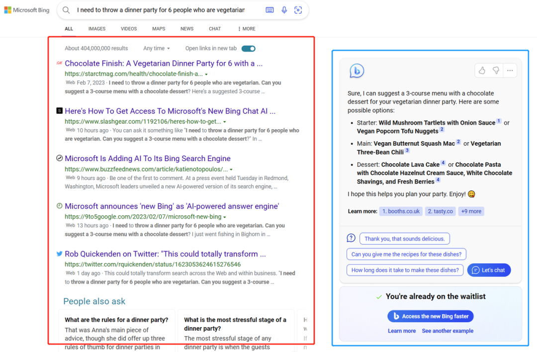 所以變身後的形態,大概就和必應今天的實例那樣,把傳統引擎的結果和AI生成的內容一同給你。
