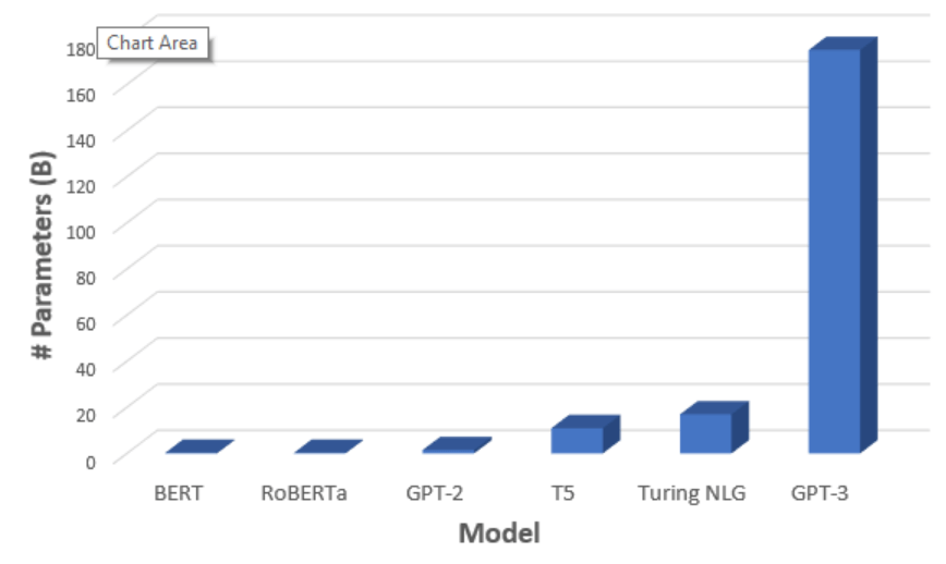 而此時OpenAI 的模型足足擁有1750 億個參數,吊打同時期,谷歌推出的語言模型的130 億個參數。