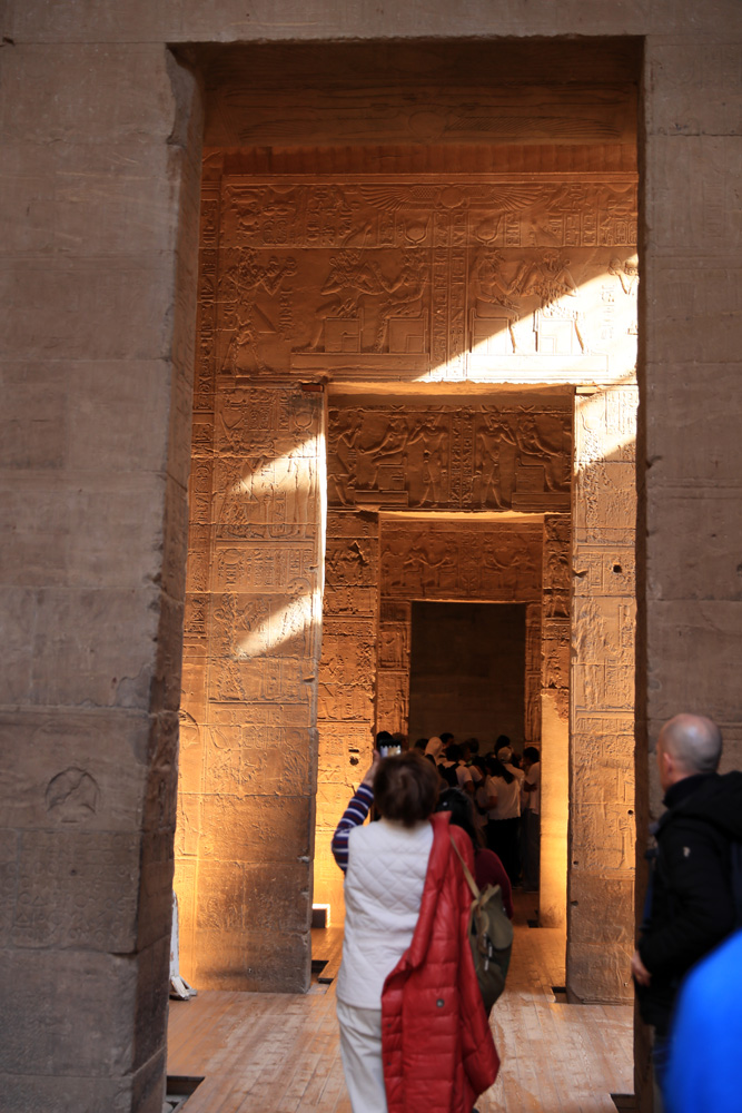 羅馬皇帝圖拉真説是要來,其實沒有來過,但托勒密王朝為他興建了一個神壇,準備迎接。但既然不來了,也就沒有完工,內牆上有些壁面是毛坯狀態,沒有常見的浮雕