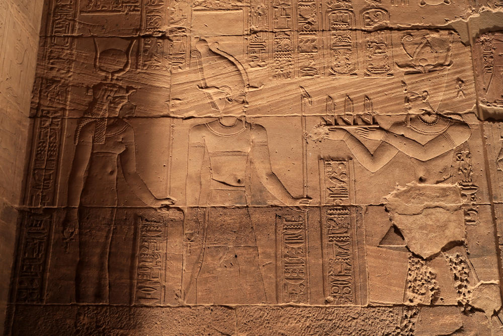 前牆上有托勒密十二世戰勝敵人的雕像,他是在公元前85年前後建造的時候,為自己留名的
