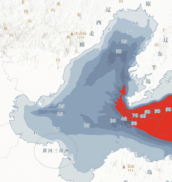 渤海是中國最北的內海,同時也屬於內水範疇,海岸線全長3800公里,面積約8萬平方公里,但是平均深度只有18米,最深處只有85米。
