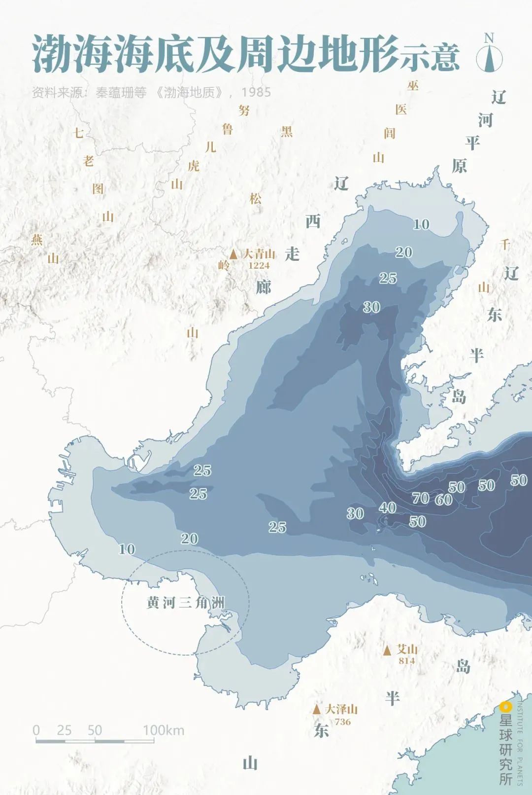 下圖是星球研究所做的渤海海底及周邊地形示意圖: