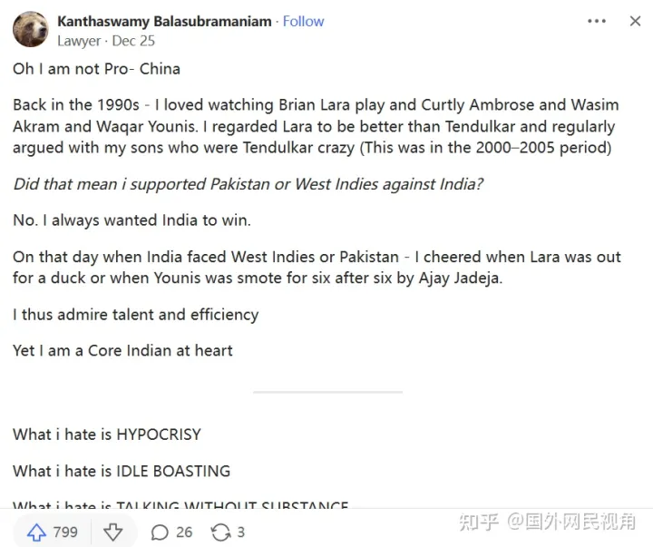 印度網民 Kanthaswamy Balasubramaniam 的話能給大家一些啓發,他説: