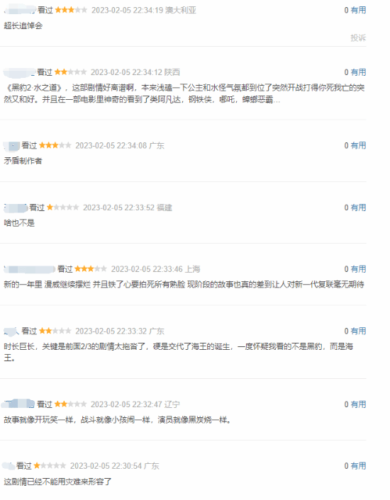 看過的觀眾對該片的吐槽涵蓋了劇情以及特效兩方面,劇情無聊拖沓,人設也不出彩,比較重要的特效也做得很差。甚至有網友調侃,都串戲到阿凡達了(水的戲份)。