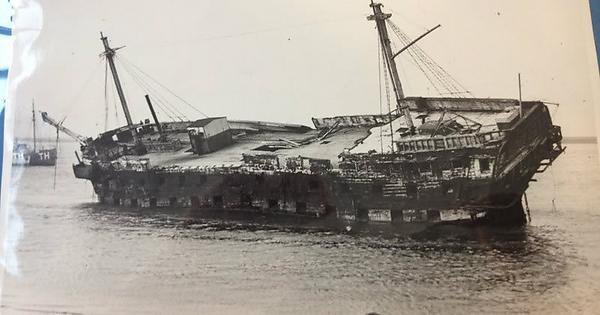 這是原H.M.S. Wellesley,在泰晤士河口被俯衝轟炸機命中沉沒。