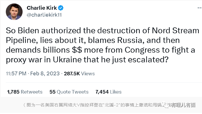 親共和黨的右翼媒體和網絡大V 就在利用赫什這篇文章抨擊拜登“繞開國會”秘密炸燬“北溪”的做法是不負責任、煽動戰爭的行為。