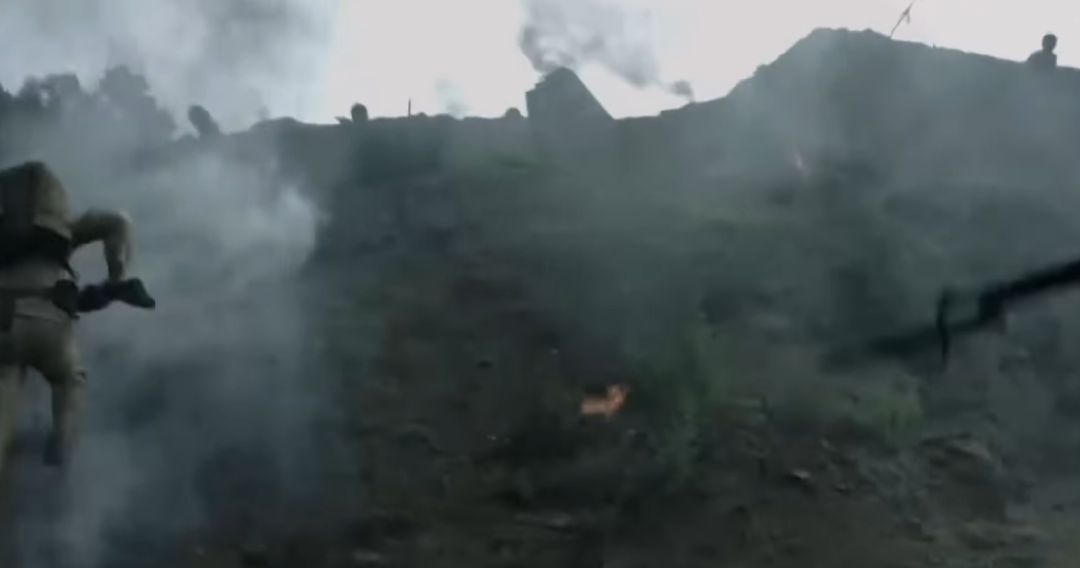 鬼子衝向土牆缺口(《淵子崖保衞戰》電影片段)