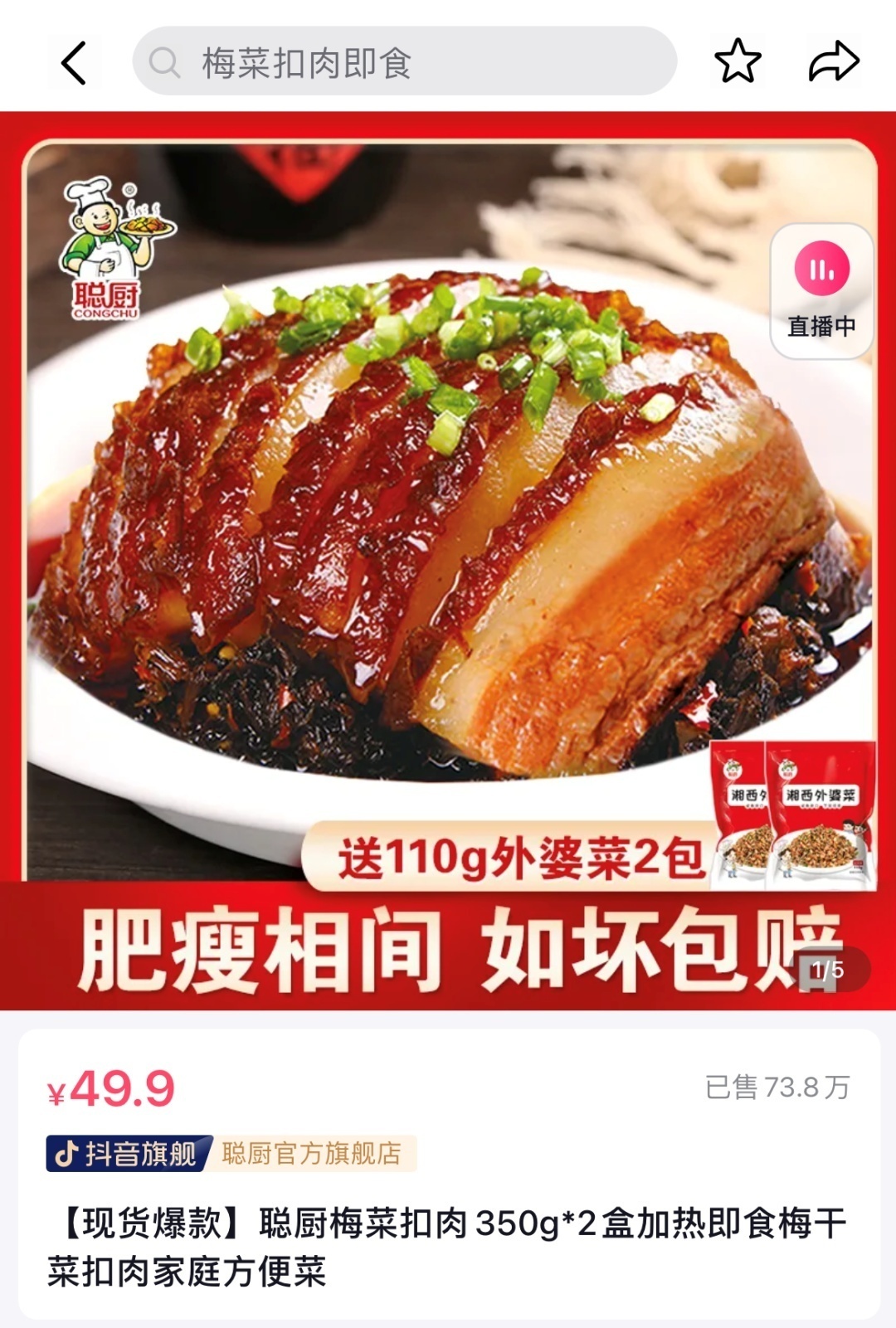 “聰廚的梅菜扣肉吃起來口感飽滿,與現做的扣肉相比,並沒有遜色多少,而且確實很實惠。”某電商購物平台上有消費者如此評價道。