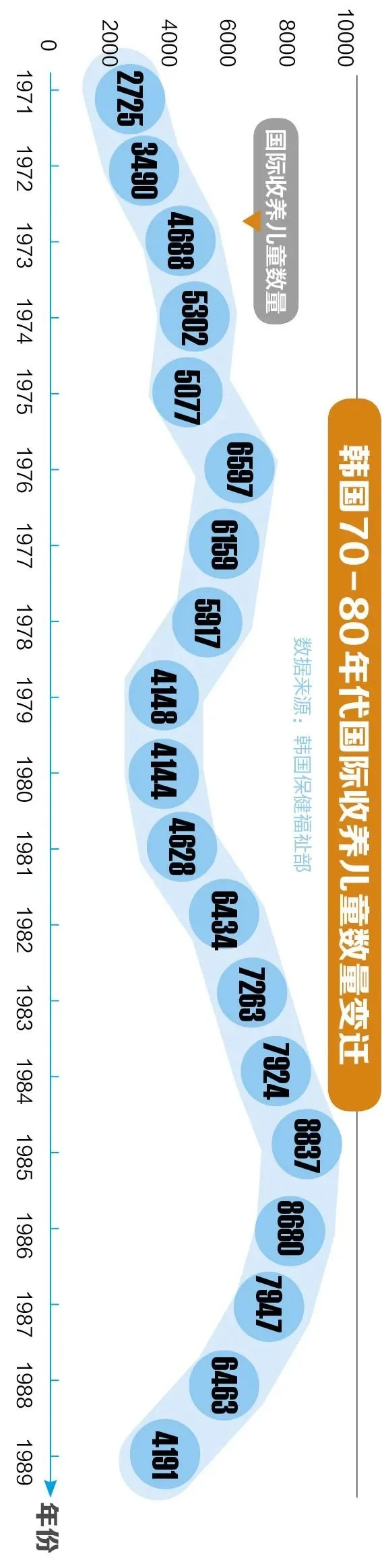 但是韓國政府在社會福利方面並無餘力,所以把兒童送往海外找別人領養成為更簡單的解決方案,政府不願加大對兒童保護機構的財政投入,或者加強對單親家庭的支持。1961年,朴正熙政府制定了《孤兒入養特例法》,以此為法律依據的海外領養在上世紀70-80年代出現暴增態勢。