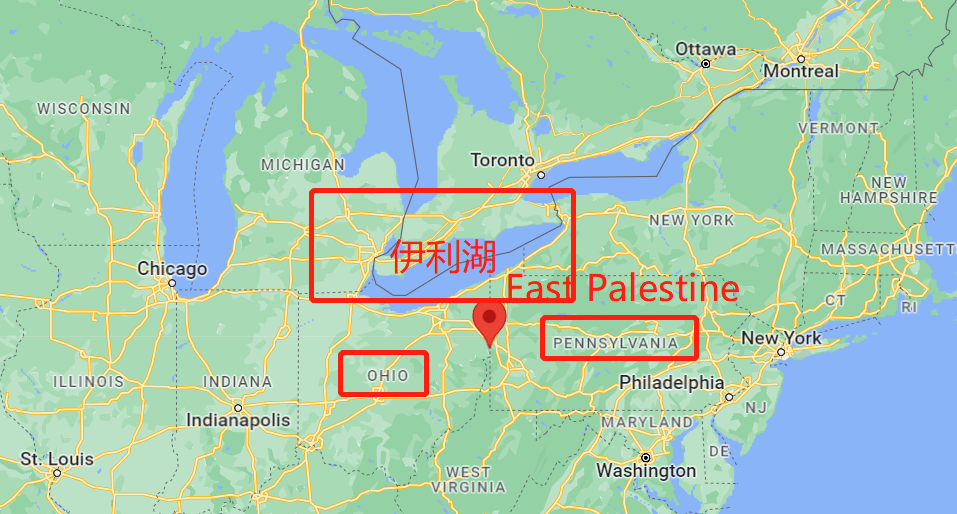 2月3號,也就是上上週五,在俄亥俄州和賓夕法尼亞州邊境的小鎮East Palestine附近,一輛載有化學物品的火車脱軌、起火、泄露。