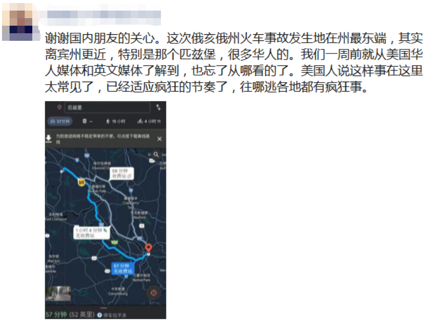 華小妹聯繫了一位在美國的朋友,她説事故發生在她家100公里以外,剛發生時她就從新聞上看到了報道,所以不存在網傳的媒體故意隱瞞不報的情況。