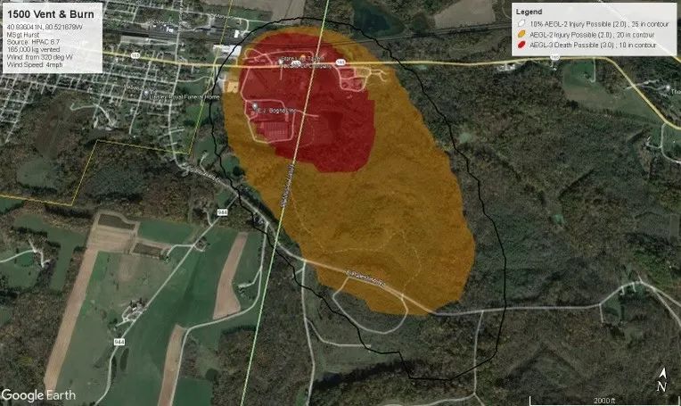 於是涉事的這家美國鐵路公司選擇了就地燃燒——讓氯乙烯排到挖好的坑道中,在坑裏點燃。