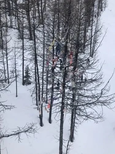 滑雪者不會就此收手,而是選擇另一顆樹來延續傳統。