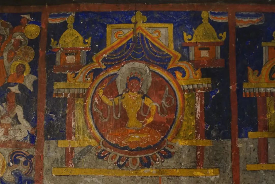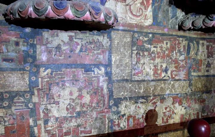 塔波寺內已經保存了一千年之久的壁畫,這種自由構圖的風格是在後世藏傳佛教壁畫中見不到的(圖片來源:Eva Lee)