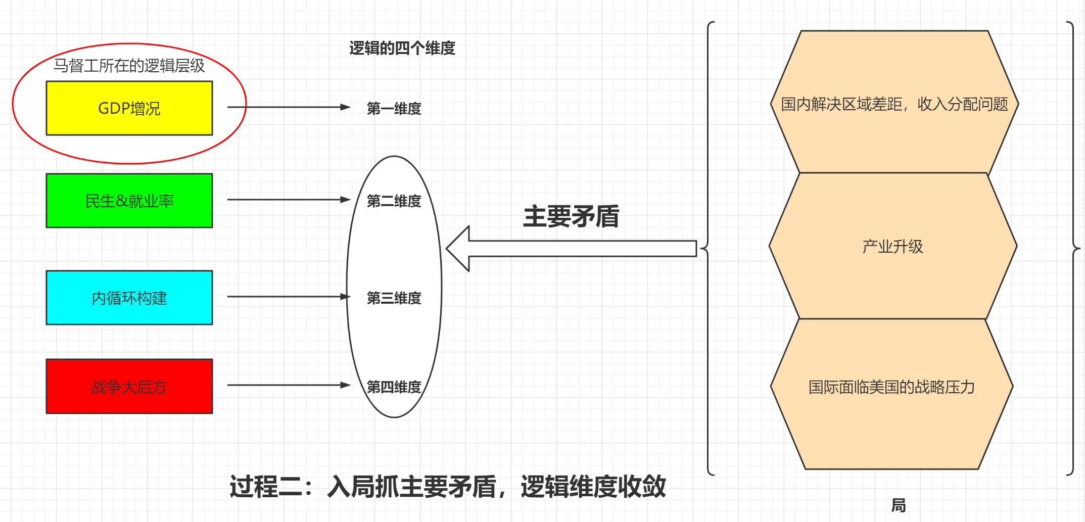 最後,對於辯證法來説,抓住主要矛盾是極為重要的。這使得我們可以將全局展開的高維複雜邏輯,往一個相對簡單的地方回溯。
