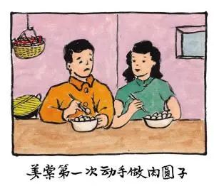 從小沒做過家務的美棠,嘗試給丈夫做肉丸子吃,誰知把肉皮也放進去了,兩人吃着口感奇怪的肉丸子,大笑不止。