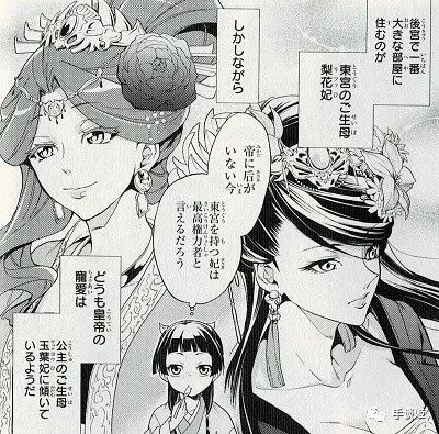 故事主要發生在後宮之中,因此這妃那妃各種宮女呀都會出現,男主角則是一名叫“壬氏”的角色,自稱是宦官,以前廣播劇時的聲優是櫻井孝宏,但動畫是不是由他配音並不清楚,目前只宣佈了主角貓貓聲優是悠木碧。