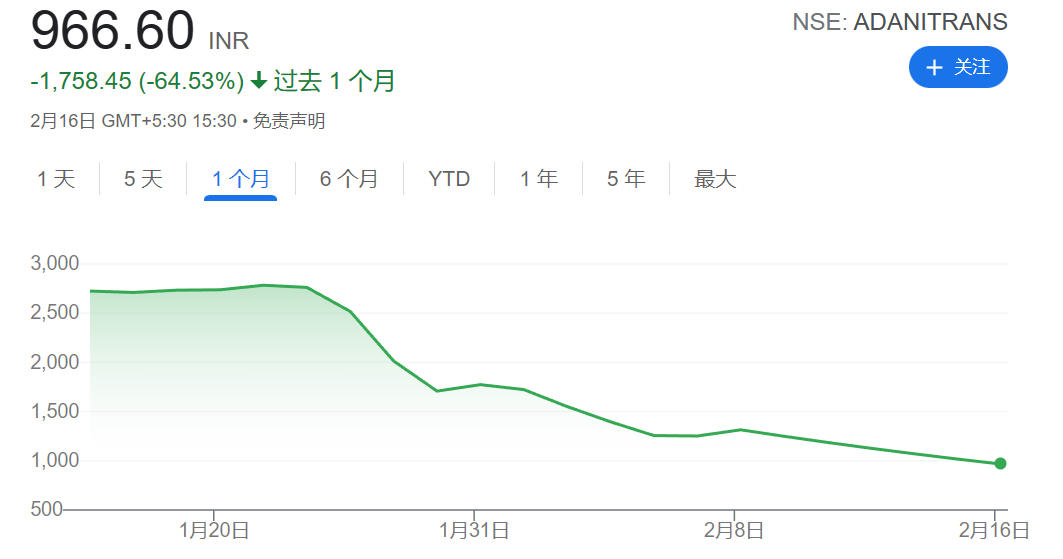 就這近一個月的跌幅裏面,説阿達尼的股價崩盤一點都不為過。