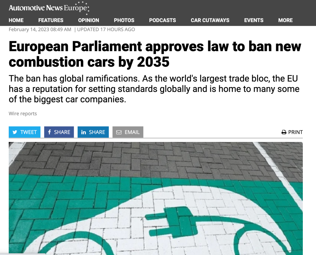 在歐洲宣佈,2035年徹底停售燃油車的同一天。