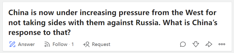 在外網有一個話題:中國現在正面臨着來自西方越來越大的壓力,因為它沒有站在他們一邊反對俄羅斯。中國對此有什麼回應?一些國外網民發表了自己的看法。