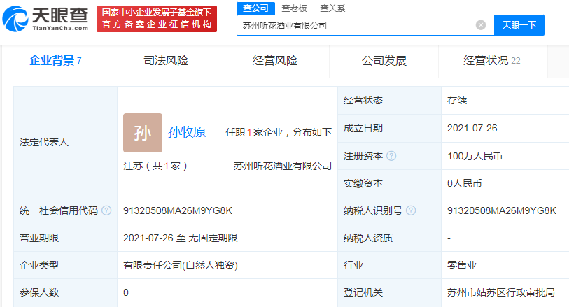 據調查,青海春天披露的2022年上半年酒水業務第一大客户蘇州聽花酒業有限公司成立於2021年7月26日,註冊資本為100萬元,實繳資本為0元。