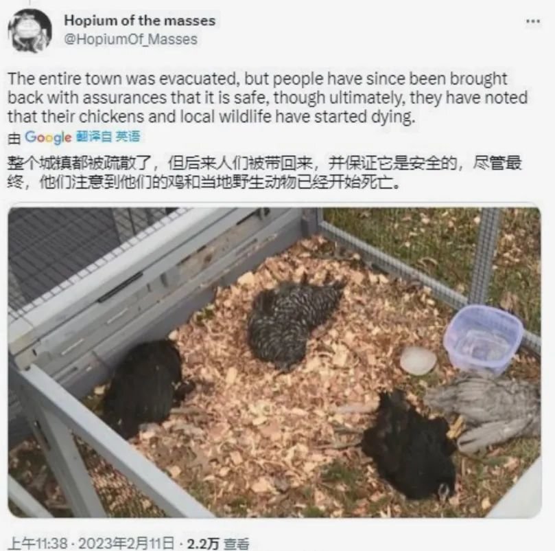所以,這次俄亥俄泄露事件最終的影響到底有多大,或許只有時間才能給出答案。但據多位美國市民反映,距事故地100公里以外地區,已經開始出現家禽和鳥類死亡,這預示着可怕的答案已經開始顯現。