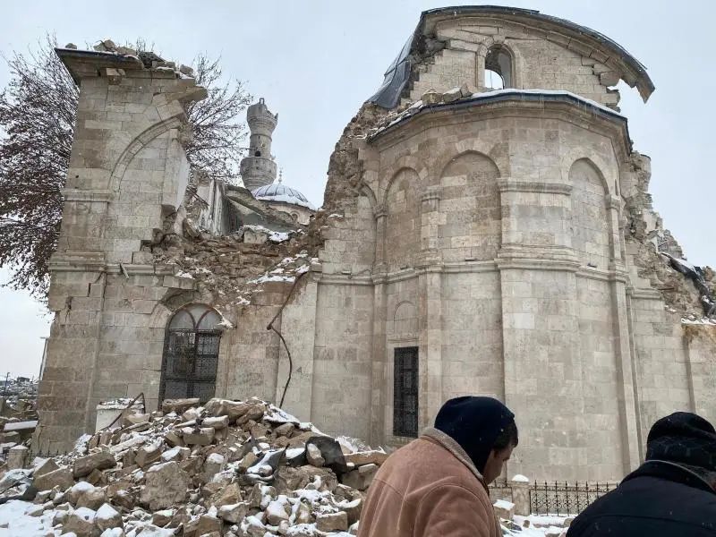 當地時間2023年2月6日,土耳其馬拉蒂亞,一座被地震摧毀的清真寺