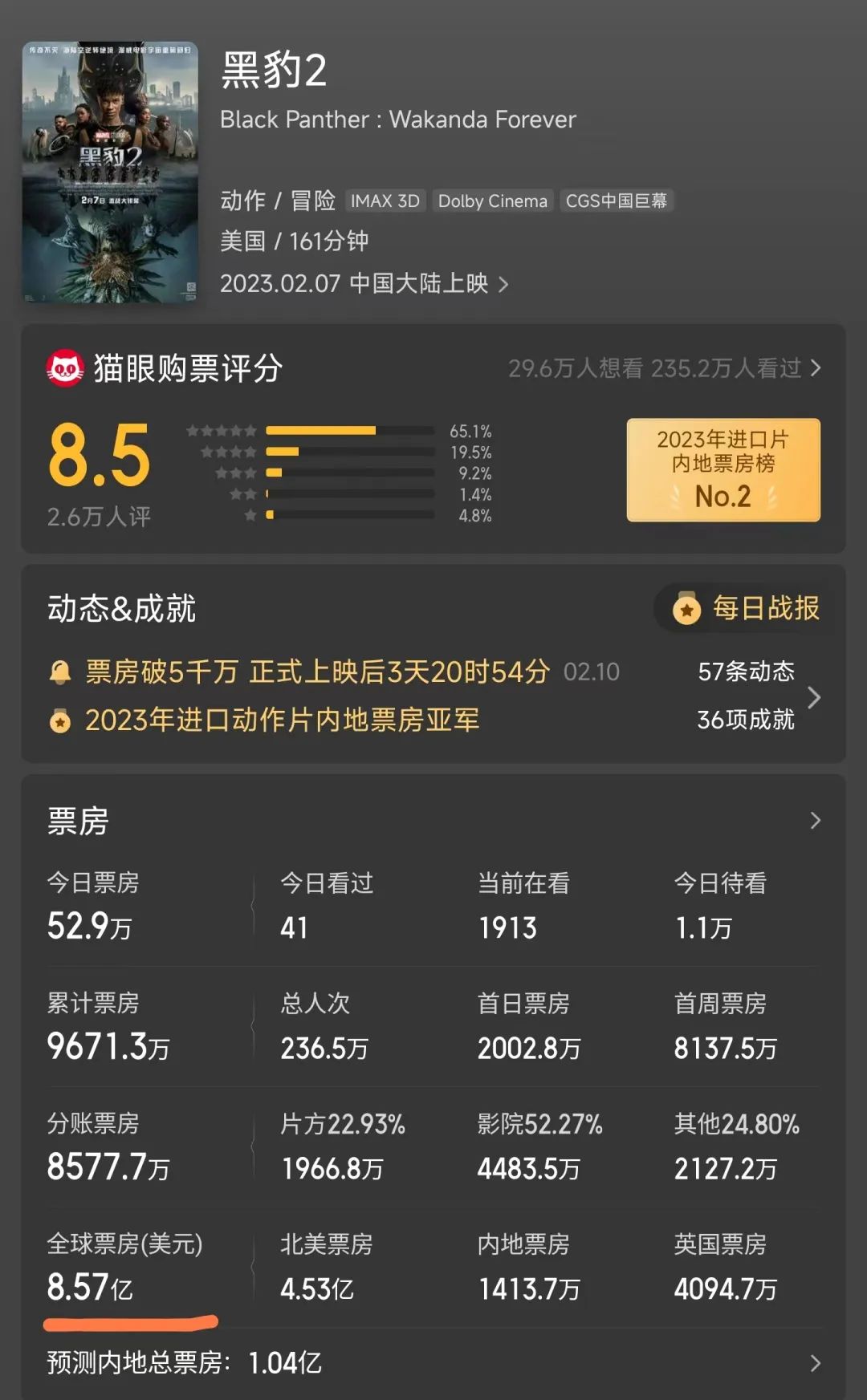 △ 第四階段收官之作《黑豹2》全球票房8.57億美元。圖源:貓眼電影專業版