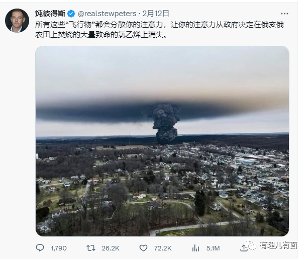 2月6日氯化烯被引爆,巨大的蘑菇雲騰空而起,一直上升到平流層,美國媒體選擇性忽略,視而不見。