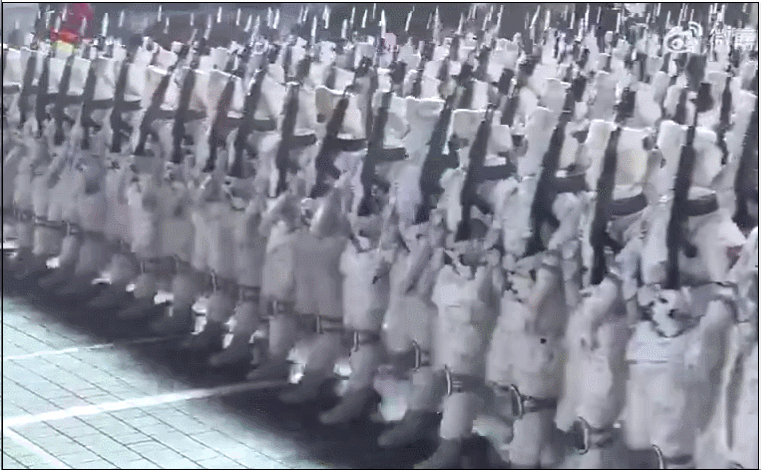比如雪地迷彩方隊,用的就是88式步槍的基本型,其劈槍動作又酷又帥,小二看了這麼多年閲兵,這麼花俏的劈槍動作還是第一次見。