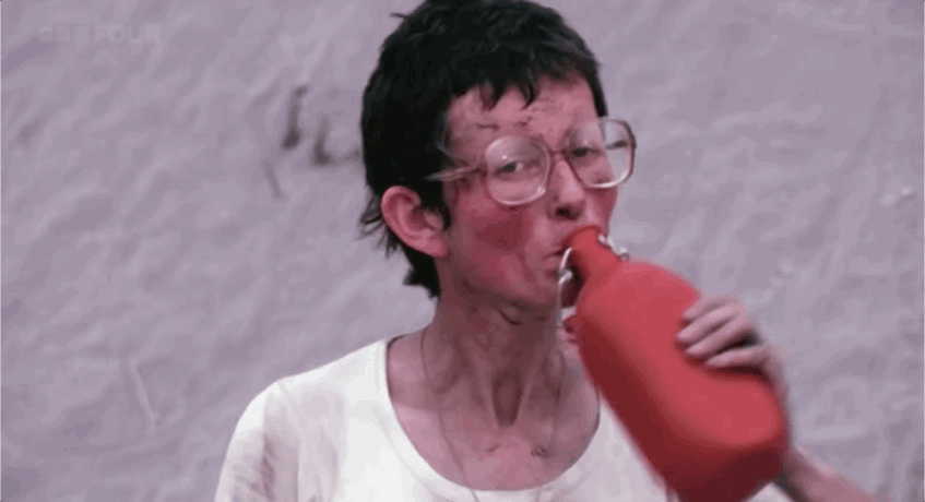在火山口,積攢的雪水被温度炙烤到不斷沸騰,卡蒂亞剛做完樣本的物質檢測,一回頭,就看到莫里斯右腳踝的皮膚開始層層脱落——他的右腳意外踏進了140度的泥水中。
