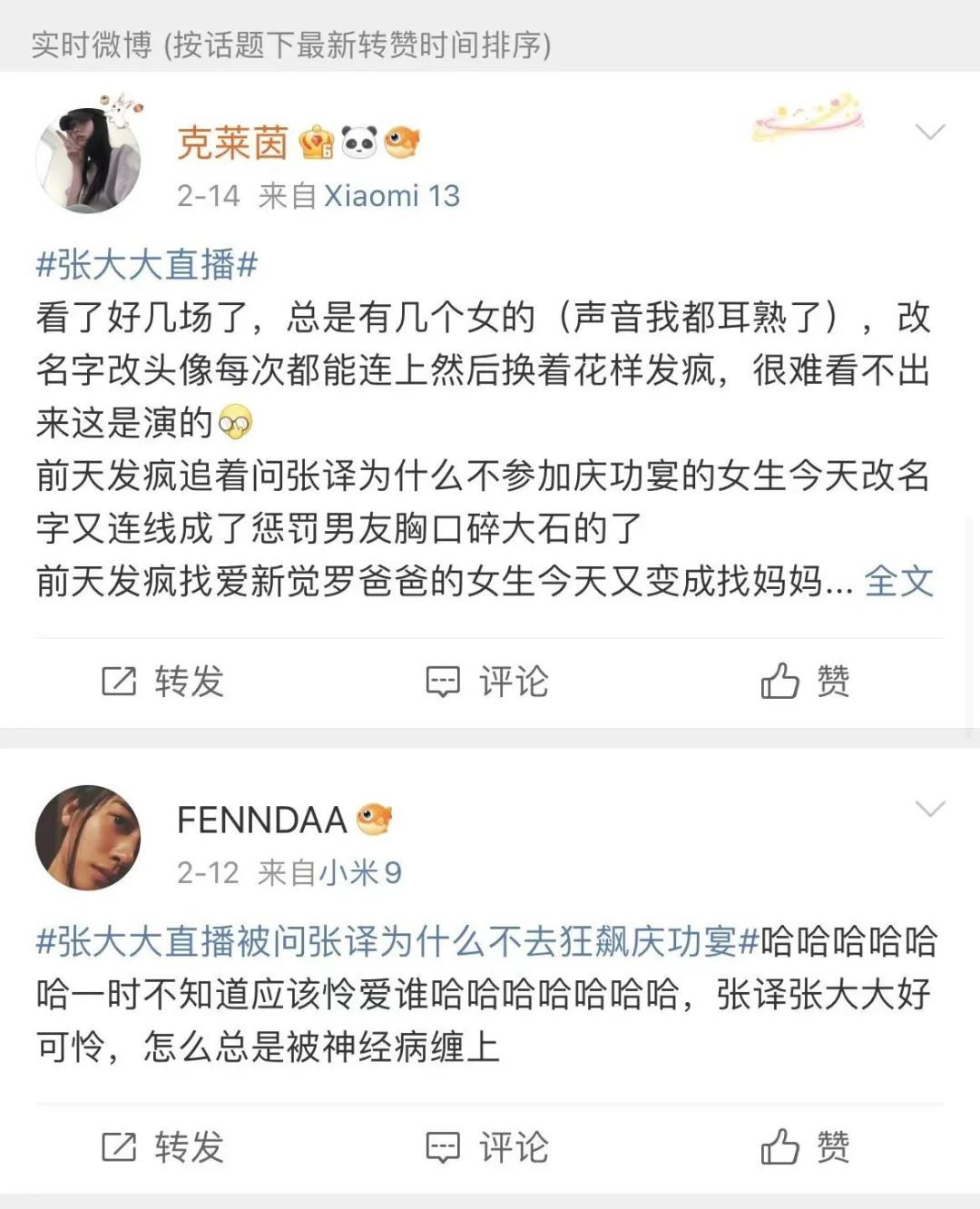 所以正是因為這個情況,當一個娛樂圈中人開啓直播傾聽後,網友與這個圈子的距離一下就被拉近了。原來普通網友是可以直接嚮明星提問、大方交流的,而明星自己也可以放下一切負擔和包袱,與一羣陌生人開心互動。當然也有網友説,張大大直播明顯是按照劇本來的,其實也有團隊在那控場,不全是真正的“活人”。可是在我看來,像這種半活人的直播都能引起網友的討論參與,這就説明觀眾和粉絲對這方面需求是多麼的旺盛,那麼明星們又為什麼不能打開自己的心扉呢?當然除了張大大,我們其實也看到很多人給最近因為《狂飆》爆火的張頌文在微博留言,他真的很多時候是一條一條地回覆的,其實這種做法也拉近了他跟觀眾的距離。