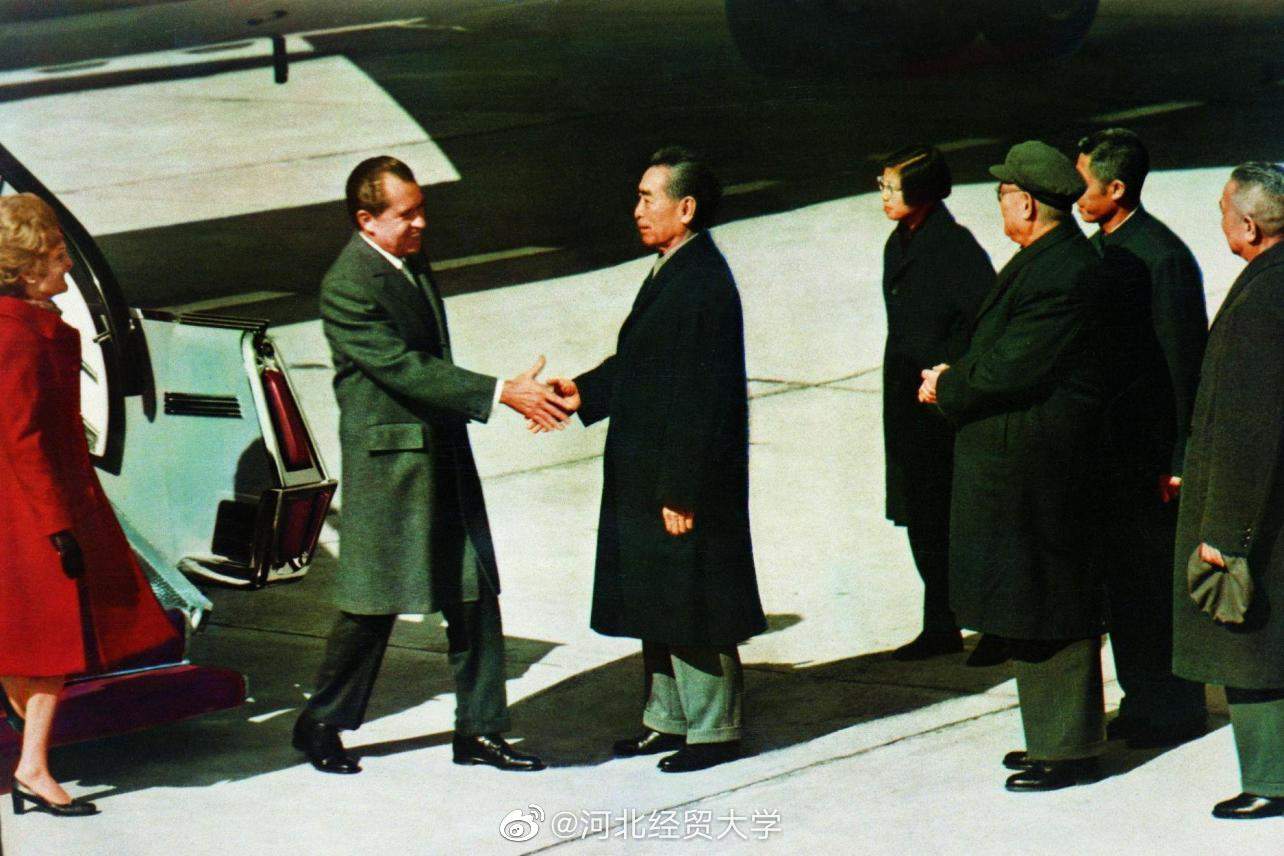 “****我知道,1954年在日內瓦會議時福斯特·杜勒斯拒絕同周握手,使他深受侮辱。因此,我走完梯級時決心伸出我的手,一邊向他走去。當我們的手相握時,一個時代結束了,另一個時代開始了。”(《尼克松回憶錄》)