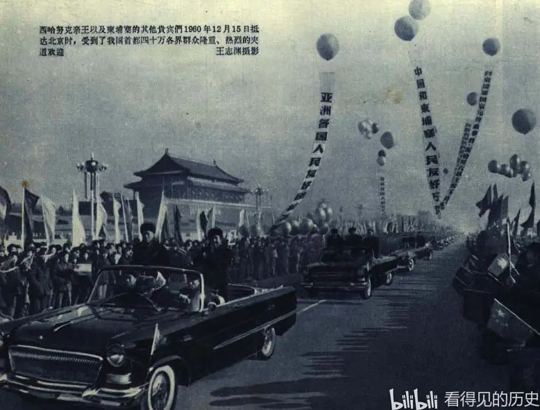 1960年12月15日,西哈努克親王以及柬埔寨的其他貴賓抵達北京時,受到了我國首都四十萬各界羣眾隆重、熱烈的夾道歡迎。王志淵 攝 作者:看得見的歷史