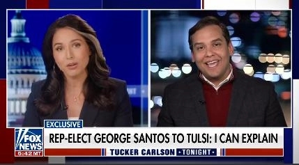 米國媒體發現這位年輕的現任眾議員向公眾所提供的所有過往、背景、經歷似乎全都是假的。從出身到族屬,從學歷到履歷,從財務到職業,從性取向到婚姻……經過媒體不斷挖掘,現在他唯一真實的身份只剩下米粒堅合眾國現任眾議員、詐騙犯罪嫌疑人以及……呃……巴西狂歡節上的變裝皇后。