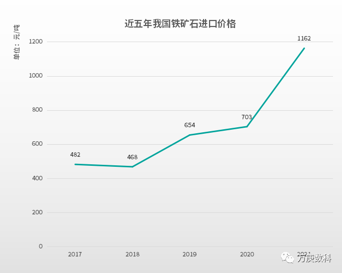 近年來,鐵礦石進口價格一路走高,2021年價格達到2017年價格的2.4倍之多。劇烈的價格波動,表明鐵礦石金融屬性較強,易受資本市場壟斷及定價炒作。鐵礦石進口價格的大幅漲落,一定程度上會影響我國鋼鐵行業的生產成本,對行業穩定性產生較大沖擊,甚至波及到下游產業的正常運行。