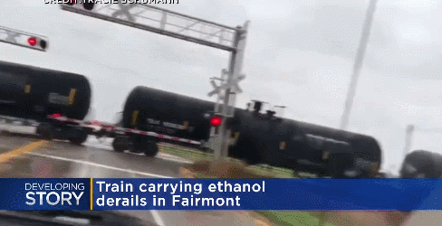 根據觀察者網消息,2021年10月28日,一列運載乙醇的火車在明尼蘇達州南部脱軌,約有8節車廂脱軌,4節車廂翻倒,造成當地一個十字路口交通堵塞。