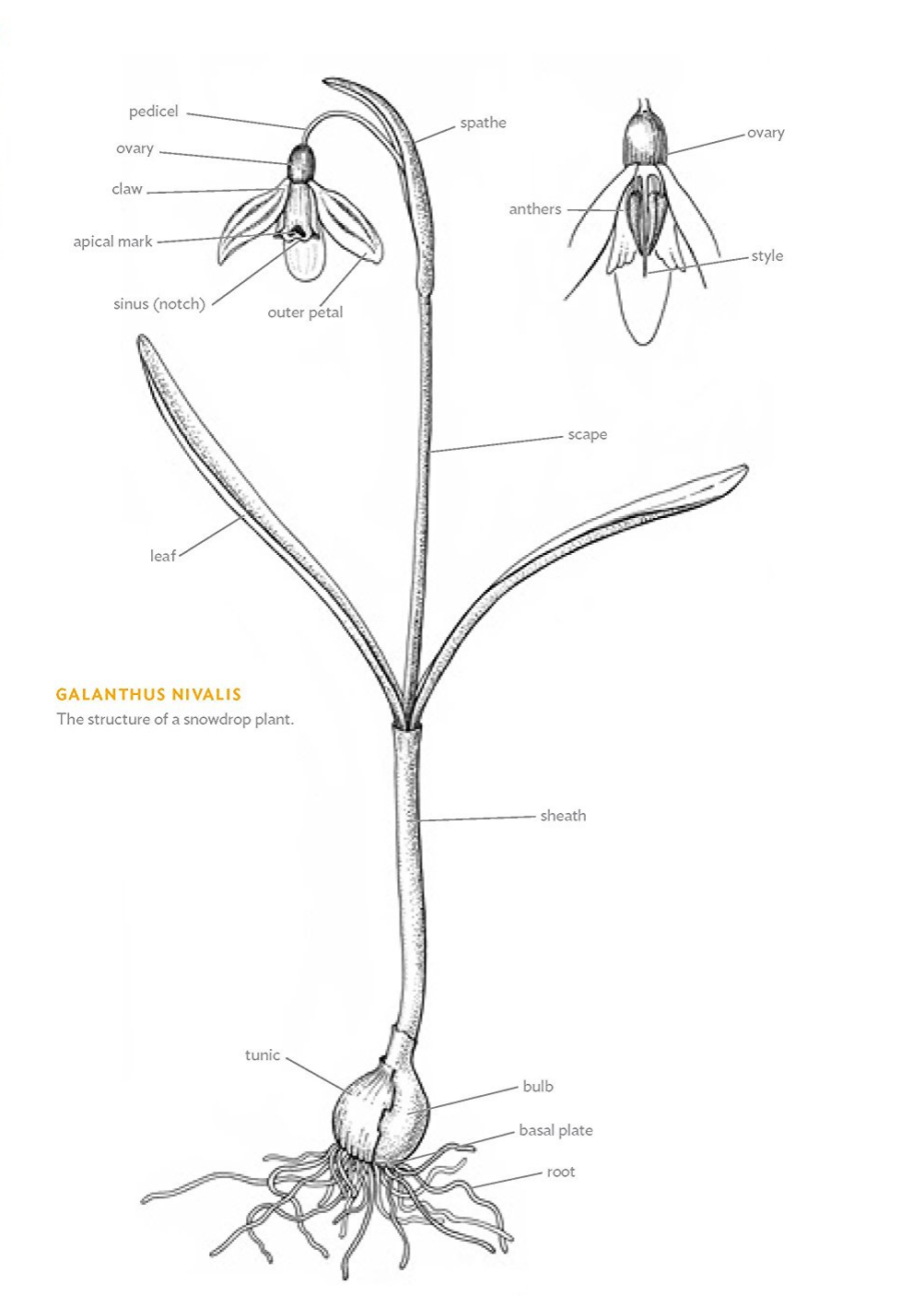 雪滴花結構(圖片來源:The Plant Lover’s Guide to Snowdrops (The Plant Lover’s Guides) Hardcover – April 22, 2014)