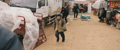孩子那從沒洗乾淨過的臉、油到板結的頭髮、主角那髒到油亮的外套,你完全相信這是個常年在外跑生活的社會底層;