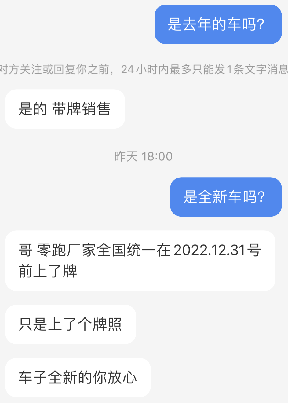 而這次的帶牌優惠車至少實打實生產了,按照銷售的説法,車本身也沒有任何問題,只是上了牌照。