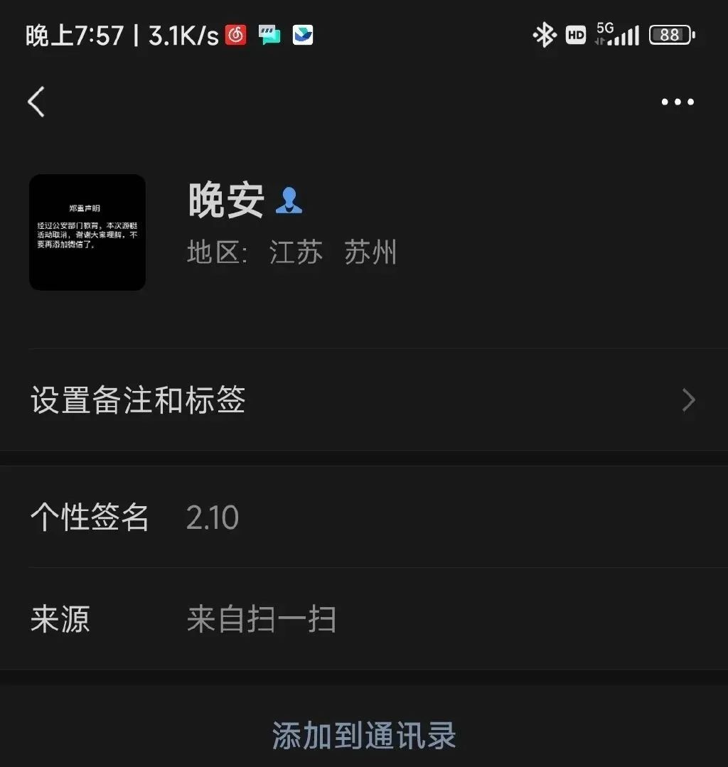現在,你掃“遊艇女僕Party”海報上的二維碼,添加活動發起人後,會發現,對方的微信頭像已修改為一則聲明。
