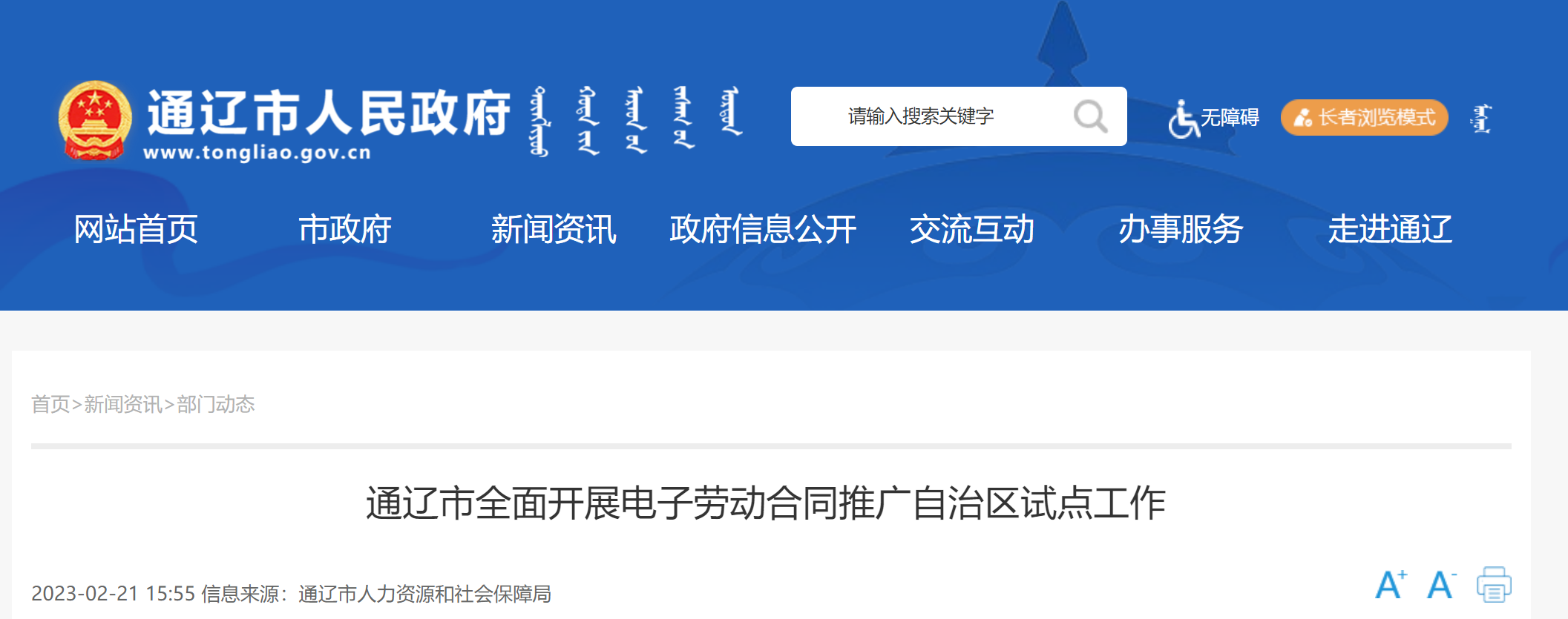 **內蒙古通遼:**全面開展電子勞動合同試點工作