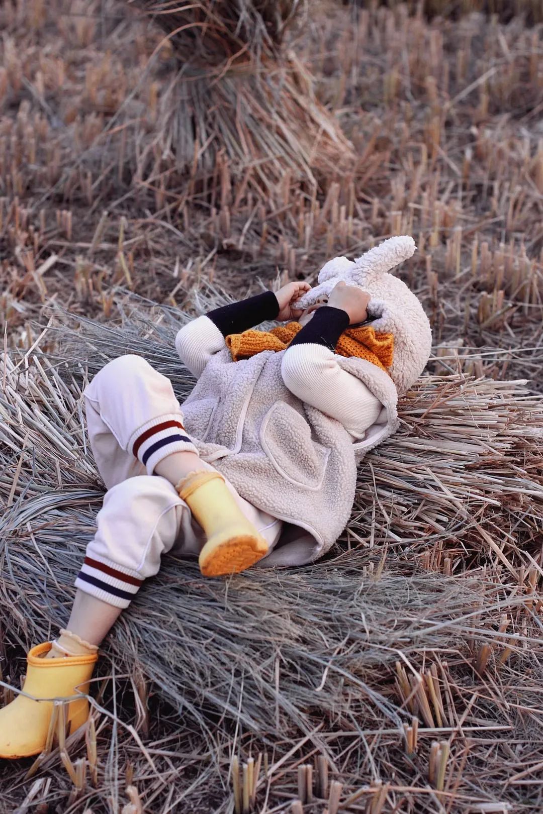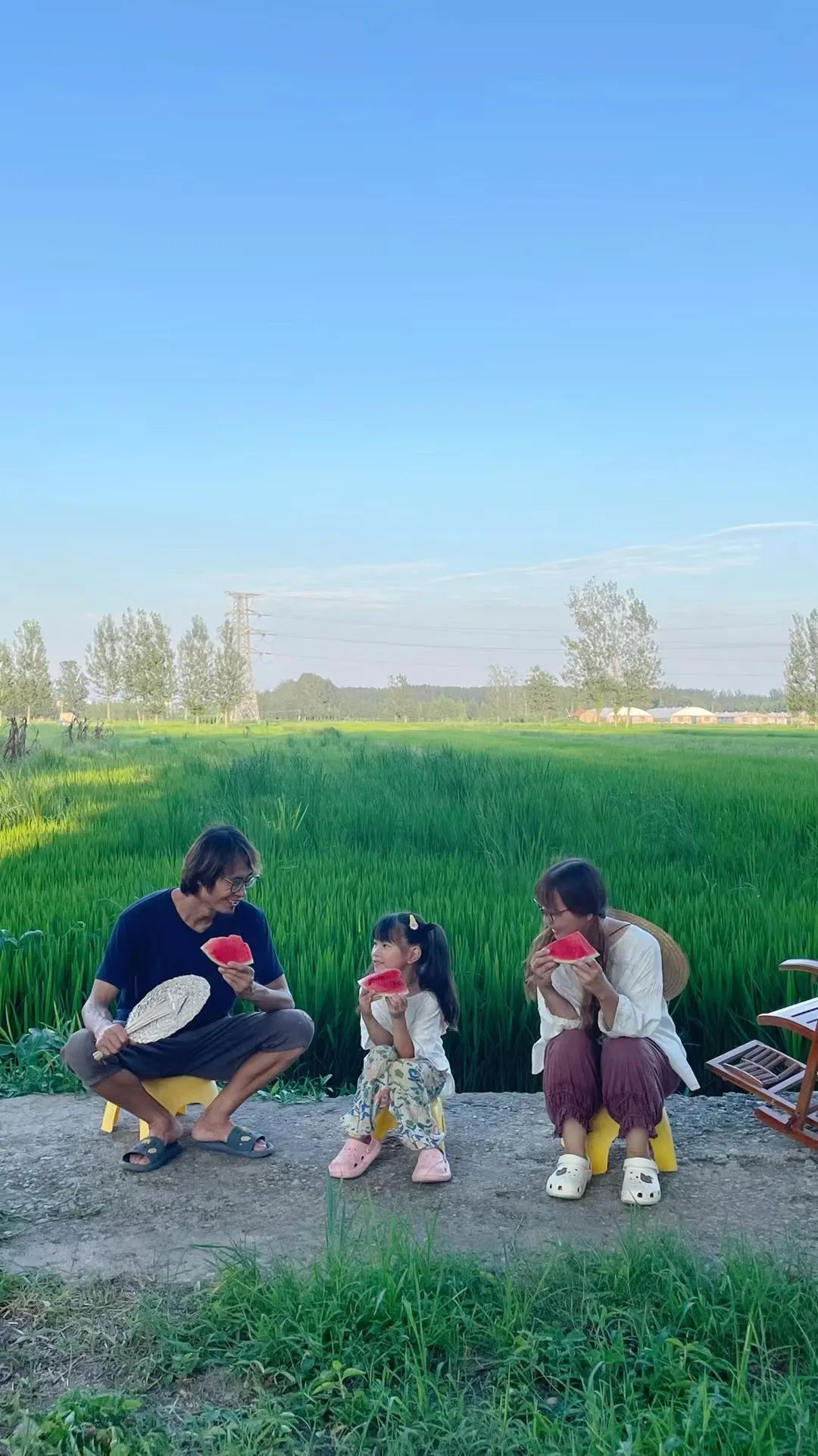村口的稻田邊,春天一家三口坐了整整一下午。