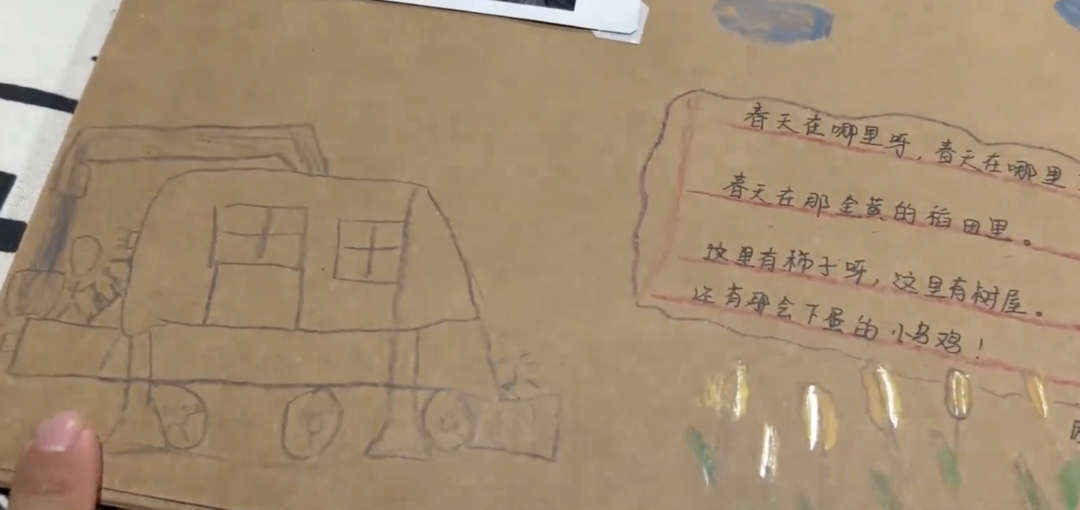 那三個月,他們的時間幾乎都是春天的。畫畫、做手工,用塑料瓶做樂器,在陽台假裝野餐。3歲的春天,給武漢的外公外婆畫畫加油,貼心告訴父母,她知道外面有小蝙蝠,還不能出去。