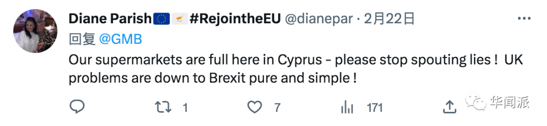 **網友Diane Parish:**我們塞浦路斯的超市已經爆滿了,請不要再撒謊了!英國的問題純粹是脱歐造成的!