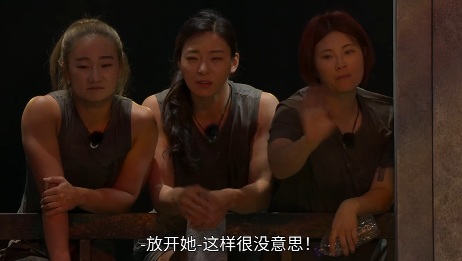 面對觀賽女選手的不滿,男選手索性把腹壓改成胸壓,還做出手勢——閉嘴吧。