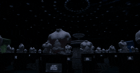 一百個參賽者的半身石膏像,繞着圈排在大廳裏。